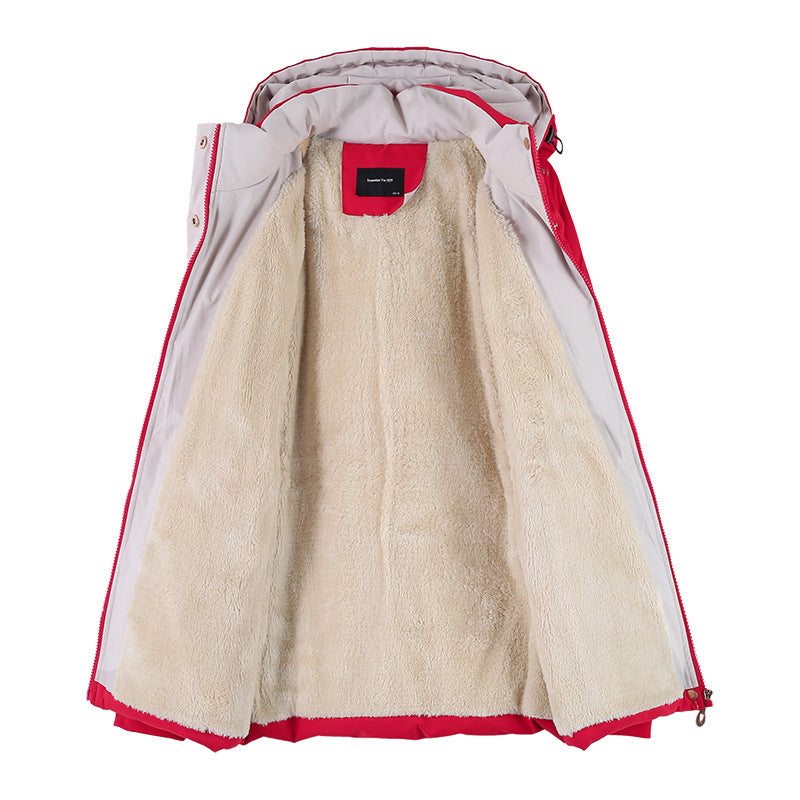 Winter Fleece-lined Thick Middle-aged Mom's Lamb Fleece Hooded Down Cotton Coat For Women